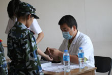 8月29日早8:40,我校2010級新生開始進行結核病篩查,這項工作是由我校校醫院及房山區疾病預防控制中心負責的。新生在教官的帶領下,以營為單位,有序進入文體館一層大廳,并按照醫生的指示進行結核病皮膚測試。