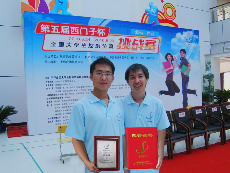 8月28日,在上海應用技術學院剛剛圓滿落幕的第五屆“西門子杯”全國大學生控制仿真挑戰賽決賽中,我校計算機與信息工程學院的李亮亮、王旭東組成的北京工商大學“睿熠之隊”表現出色,榮獲本次比賽全國二等獎,全國人大常委會委員、全國人大教科文衛委員會委員、教育部原副部長吳啟迪教授為獲獎者頒發獎章、獎杯及獲獎證書,為學校贏得了榮譽。此次參賽指導老師為劉翠玲、方平,同時得到了學校教務處、研究生部的大力支持。