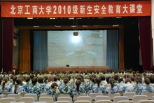 9月2日下午1:30,2010級新生安全教育大課堂在我校良鄉校區文體館二次開課。保衛處處長頓勁松以“消防安全”為主題進行了精彩的演講。講座由保衛處副處長陶偉主持。2010級經濟、藝傳、機械、外語、法學等學院全體參訓學員認真聆聽了本次講座。