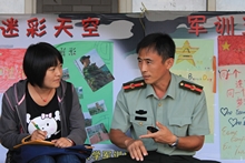 雖然劉鍵老師是二營(yíng)六連的指導(dǎo)員,但是不管哪個(gè)營(yíng)的同學(xué)出現(xiàn)不舒服的情況,他都會(huì)去幫忙。就在9月7日下午,正在吃晚飯的劉鍵老師得知一營(yíng)三連的王薇同學(xué)因哮喘而暈倒,便馬上放下碗筷,趕到了女生宿舍,將王薇同學(xué)背上救護(hù)車,又隨車趕到良鄉(xiāng)醫(yī)院,與其他老師一起,將王薇同學(xué)安頓好才回來(lái)。2010級(jí)軍訓(xùn)的十幾天中,劉鍵老師幫助同學(xué)的例子不勝枚舉,但是這位低調(diào)的老師卻總是對(duì)記者說“我并沒有做什么”、“同學(xué)們都很堅(jiān)強(qiáng)”。