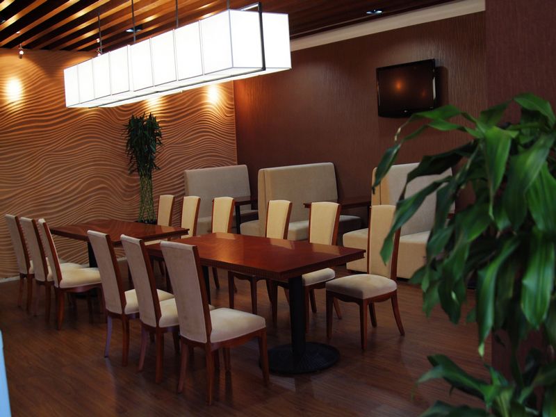 餐廳設有“VIP包房、茶餐大廳、陽光餐廳”三項功能服務區。VIP包房共有7間,可接待每桌8-20人不同規模的宴請;茶餐大廳可容納200人同時用餐,可接待大型會議、宴會、婚宴;陽光餐廳是經過特意設計的,環境清新、自然、雅致,中西合璧,是小酌、休閑的理想場所。