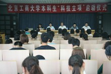 9月15日下午3:00,我校本科生“科技立項”啟動儀式在我校良鄉校區綜合樓106會議室舉行,校黨委副書記盧思鋒、教務處處長張曉堂、學生處處長呂素香以及科技處副處長王小藝出席。參加此次啟動儀式的還有各院系團總支書記、我校2010年“挑戰杯”首都大學生創業競賽指導老師、獲獎學生代表以及院系負責科技活動的團學干部等。團委書記呂良主持了此次大會。