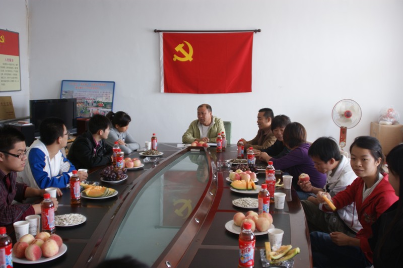 在村委員會會議室里,徐書記熱情接待了同學們,通過座談,我們了解到太平莊在徐書記等村干部的帶動下,舊貌換新顏,發生了翻天覆地的變化;了解到太平莊在先進投資理念的引導下,有了反季節蔬菜大棚,農民收入有了提高,生活水平明顯改善;了解到大學生村官的實際生活、工作情況;通過交流,更看到一名基層黨員踏實、肯干的作風,他總把“群眾的事無小事”掛在嘴邊,落在行動,使太平莊村的精神文明建設和物質文明建設,都取得了巨大的豐收。
