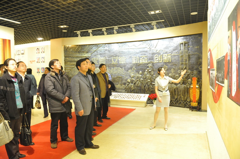 隨后,考察團來到了校史館,尚久旺老師詳細介紹了我校的發展歷史和取得的成績,考察團成員對我校的演變和發展有了更為清晰直觀的印象。在圖書館,何鈞老師介紹了館藏面積、藏書等基本情況。