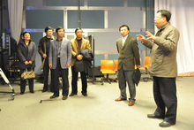 最后,考察團來到了數字藝術制作中心,該中心也是“北京高等學校實驗教學示范中心”。藝術與傳媒學員副院長兼數字藝術制作中心主任張翔向考察團成員介紹了中心的總體情況,并陪同參觀了演播大廳、數字視頻實訓區、數字音頻實訓區等實驗區。