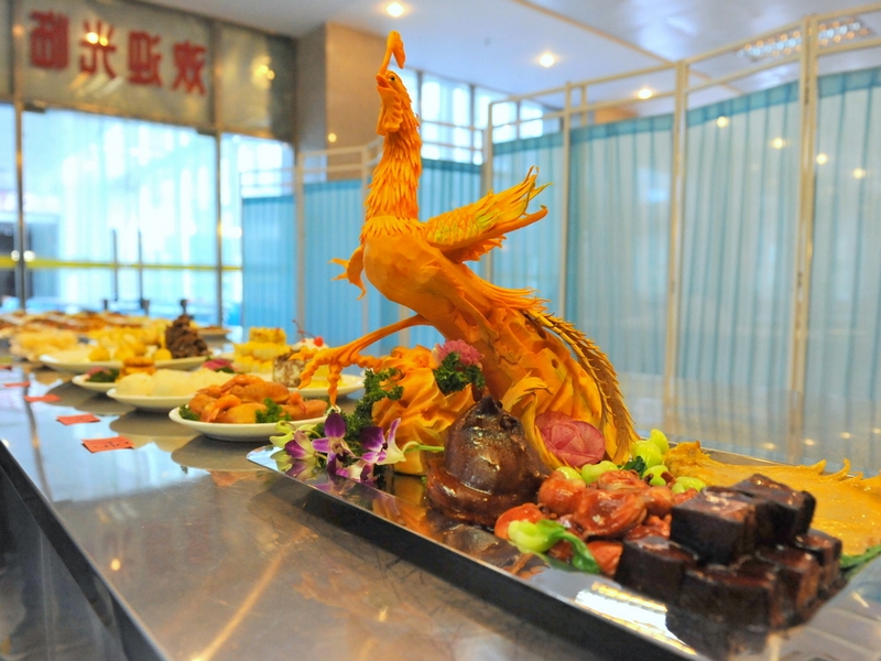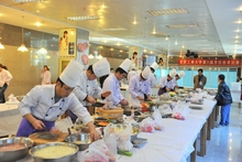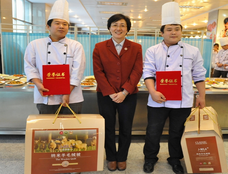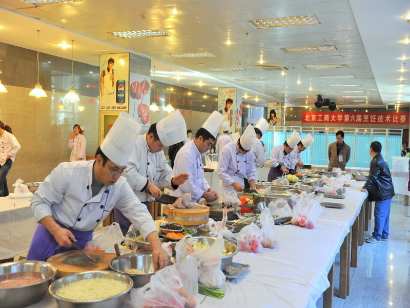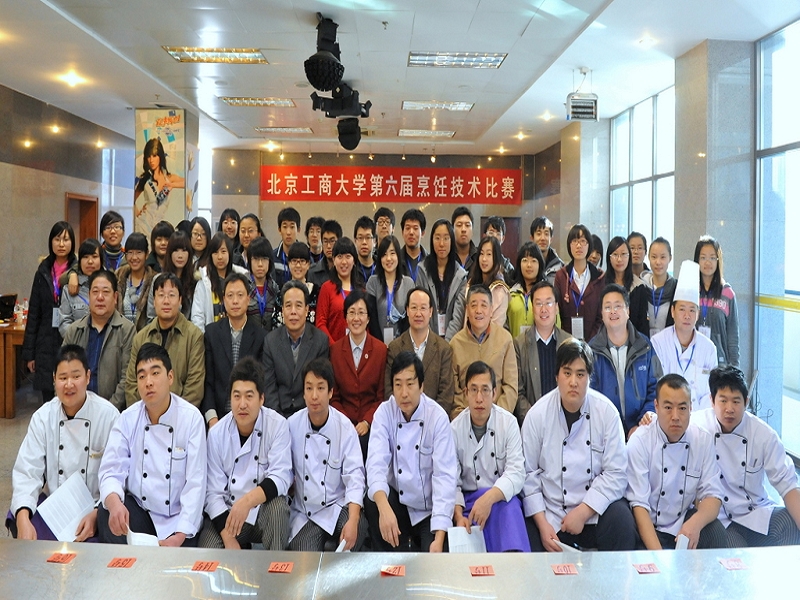 20101113,后勤飲食管理科在良鄉校區和苑餐廳舉辦北京工商大學第六屆烹飪技術比賽。副校長呼文亮、張耘及其它部門相關領導到現場觀摩指導。