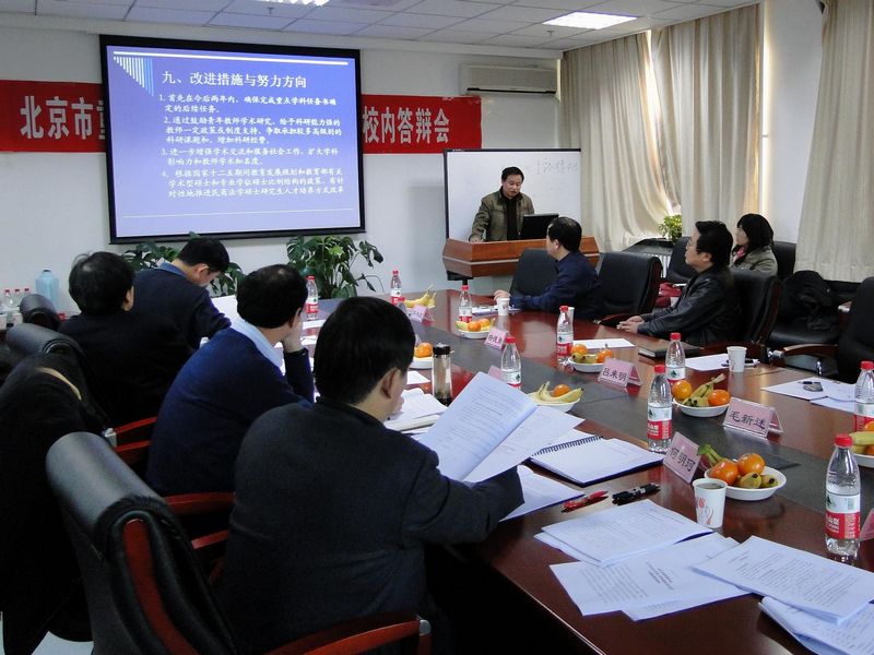 11月15日下午,我校在綜合樓415和421會議室分別進行了市重點(建設)學科文科組和工科組的中期檢查校內答辯會。本次會議是我校為了配合北京市教委將在12月進行的重點學科中期檢查,而進行的學校自查工作。本次答辯會我校邀請了來自對外經貿大學、北京交通大學、中國農業大學、首都經貿大學、北京化工大學和北京科技大學等10名校內外專家,對我校的重點學科建設工作給予評價和指導。