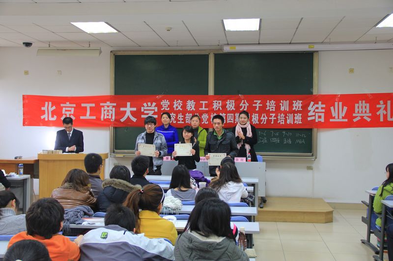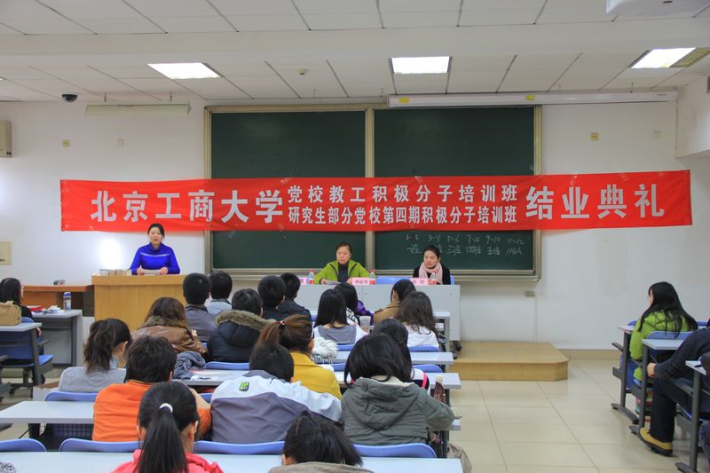 11月27日上午9時,北京工商大學黨校教工積極分子培訓班暨研究生部分黨校第四期積極分子培訓班結業典禮在阜成路校區舉行。校黨委組織部副部長、黨校辦公室主任李躍萍,研究生部黨總支副書記、研究生部分黨校副校長熊慧,研究部團總支書記許欣,以及研究生黨建小組部分成員,教工和研究生入黨積極分子130余名參加了此次結業典禮。大會由黨校兼職輔導員趙煒主持。