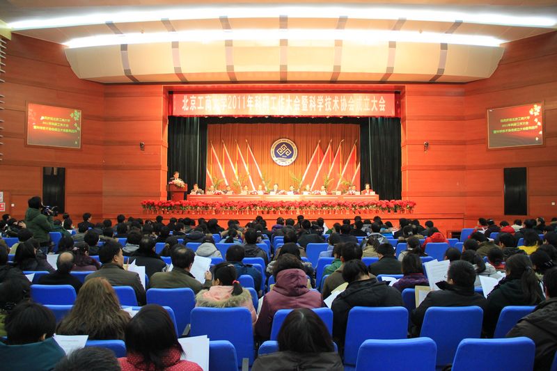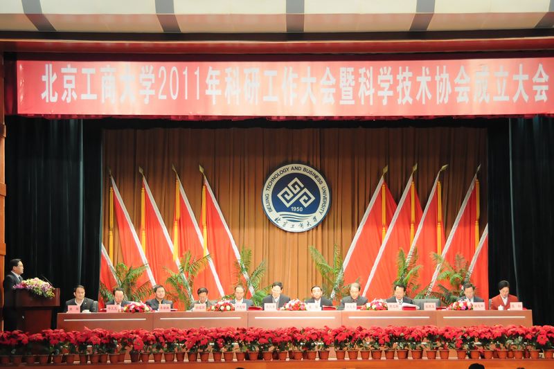 112下午,北京工商大學2011年科研工作暨科學技術協會成立大會在阜成路校區隆重召開。會上宣布,北京工商大學科學技術協會成立。北京市科協黨組書記、常務副主席夏強、副主席周立軍,校黨委書記孫堯東、校長譚向勇、黨委副書記盧思鋒、副校長孫寶國、謝志華、李朝鮮、張耘、呼文亮,全體中層干部、校科協全體委員、教工及學生代表參加會議。會議由黨委副書記、紀委書記張德玉主持。