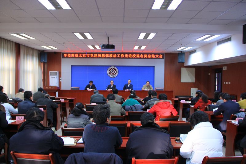 1月14日上午,學校在阜成路校區召開申報北京高校黨建和思想政治工作先進??偨Y會議。學校黨委書記孫堯東、黨委副書記盧思鋒、黨委副書記、紀委書記張德玉出席會議。各黨總支、直屬黨支部書記、副書記及各黨群部門工作人員參加了會議。會議由組織部部長黃志剛主持。