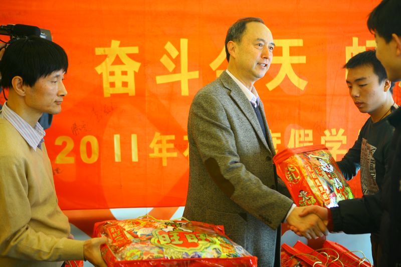 盧副書記代表學校領導向留校學生贈送了節日禮品、慰問金、餐券和電話卡。祝愿同學們在新的一年里學習進步、健康快樂。