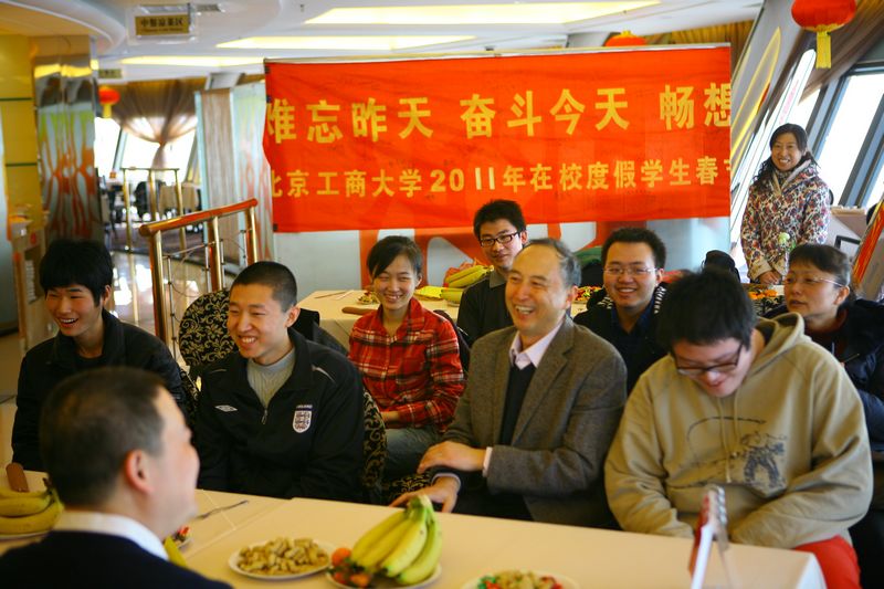 2月2日,農歷“除夕”。11時,中央電視塔旋轉餐廳張燈結彩、喜氣洋洋,由學生處主辦的“難忘昨天、奮斗今天、暢想明天”2011年寒假留校學生春節座談會及節日午宴在一派節日氣氛中舉行。學校黨委副書記盧思鋒及有關院系、職能部門負責同志與寒假留校的學生歡聚一堂,共賀新春。