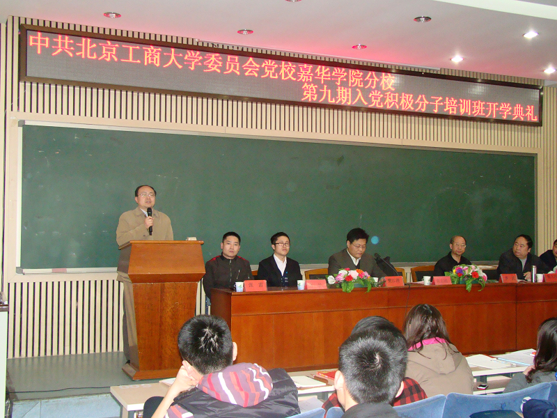 3月13日下午,中共北京工商大學(xué)委員會(huì)黨校嘉華學(xué)院分校第九期入黨積極分子培訓(xùn)班開(kāi)學(xué)典禮舉行。