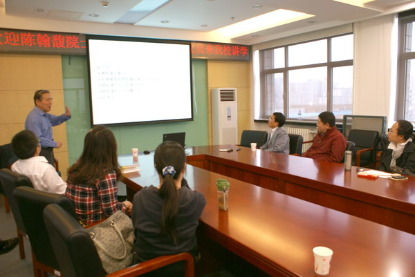報告會前,副校長李朝鮮教授親切會見了陳翰馥院士,對陳翰馥院士等專家的到訪表示熱烈歡迎,他希望陳院士多來學校指導學科建設與科學研究,對學校的發展轉型多提寶貴建議。報告會后,副校長謝志華教授應邀專門與陳翰馥院士等專家進行了座談,對陳院士在百忙中到訪我校表示衷心感謝.謝志華副校長結合自己學習數學的體會和專家們一起探討了數學在其他學科建設中的地位和作用。他同時指出,陳翰馥院士這樣的高水平專家為我們做學術報告,必將令我們受益匪淺、終生難忘,對學科的發展建設將起到引領作用。