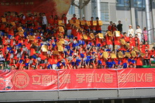 隨后,各院、部進行了精彩的學生啦啦操展示賽。作為今年運動會開幕式首次出現的節目,啦啦操由各院系師生精心設計編排,將藝術與體育完美地結合在一起,充分體現了廣大師生的智慧與創意。動感十足的機器人舞,充滿春天氣息的芭蕾舞,色彩繽紛的雨傘舞,青春靚麗的紙扇表演,優雅迷人的華爾茲……各具特色的節目輪番上演,讓人目不暇接;形式多樣的表演,為觀眾獻上一場精彩的視覺盛宴。房山區體育局副局長郭東云贊道:“各個學院的表演都很有創意,充分體現了大學生的創新精神。”