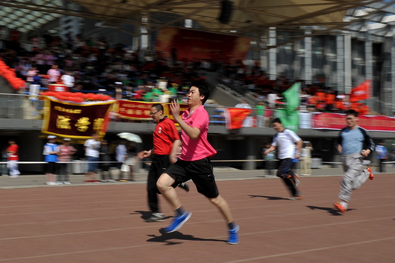 楊凱老師除了參加100米的項目外,還要進行之后的4*100米接力比賽。生活中,除了喜歡跑步,他還尤愛籃球和足球。他笑稱參加體育活動是因為自己喜歡,而且能強身健體。