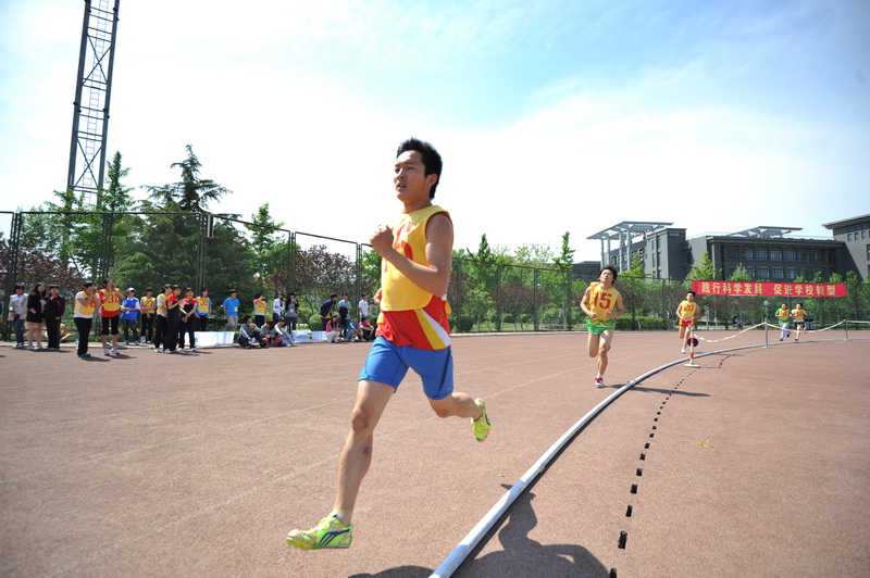 這是楊凱第一次以老師的身份參加校運動會,當問及參加教職工100米比賽,與以往作為學生參加比賽的最大不同時,楊凱老師笑著坦言道:“人少。”雖然人數不多,但為了給藝傳學院爭光,楊凱老師拼盡全力,跑得也不算輕松,100米下來后額上滲出了汗水。