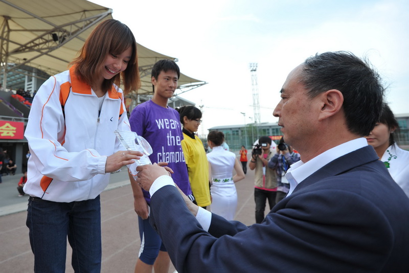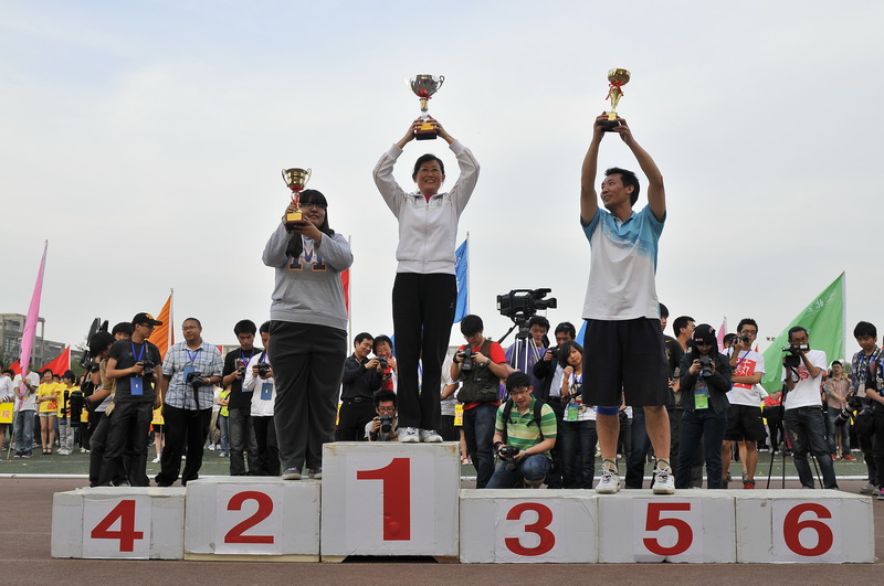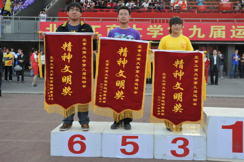 運動員代表再次入場,頑強的拼搏已變成了滿意的收獲。團委書記呂良宣布了北京工商大學第十屆體育文化節成績,包括網球賽、乒乓球班級團體賽、排球聯賽、羽毛球班級團體賽、男子足球聯賽、單腳踢毽團體賽和定向越野賽在內的7項比賽結果依次揭曉;體育與藝術教學部副主任陳新宣布了本屆運動會學生團體總分比賽成績;校工會文體部部長徐紅京宣布了教工比賽成績;黨委宣傳部部長張春萍宣布了獲得“精神文明獎”和“啦啦操展示獎”的單位。(名單見附件)