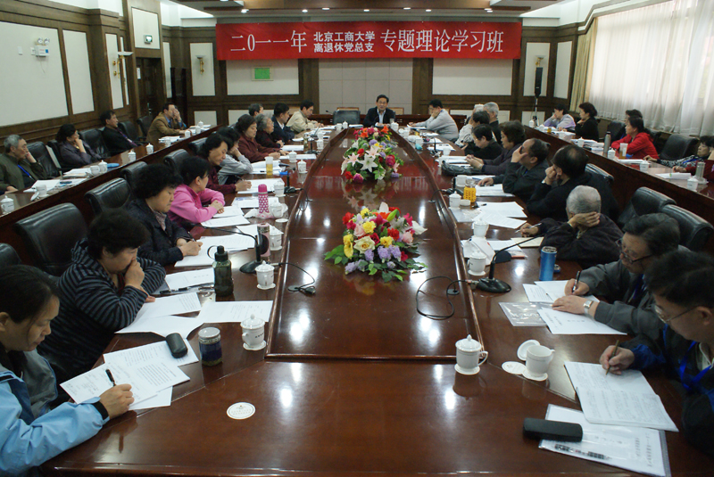 5813日,離退休黨總支以“認真貫徹落實黨的十七屆五中全會精神,深入學習、理解學校‘十二五’時期發展規劃的指導方針、發展目標及總體部署”為主題舉行專題理論學習班。