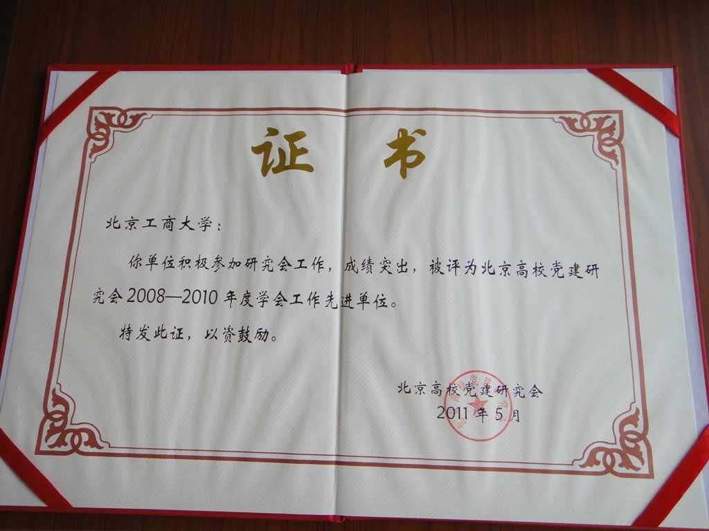 會上表彰了北京高校黨建研究會2008-2010年度學會先進單位和優秀研究課題。我校榮獲北京高校黨建研究會2008-2010度學會工作先進單位,我校和北京化工大學聯合研究的“處級干部考核評價機制的研究與實踐”課題榮獲2010年度學會優秀研究課題。