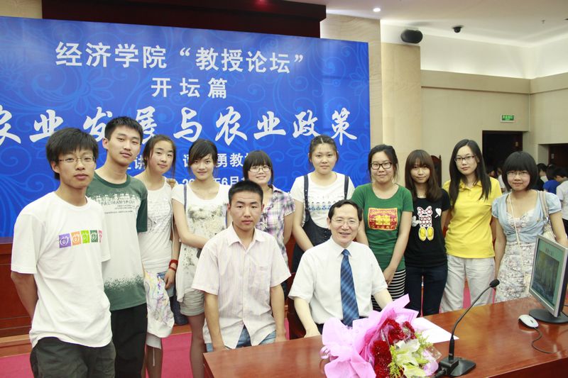 譚校長(zhǎng)由近期發(fā)生在世界各地的食品安全事件入手,分析了農(nóng)業(yè)發(fā)展與農(nóng)業(yè)政策的關(guān)系;剖析了中國(guó)目前發(fā)展中存在的問題和政府的地位;詮釋了農(nóng)業(yè)政策制定中的現(xiàn)狀、目標(biāo)和措施三要素之間的邏輯關(guān)系;最后,對(duì)促進(jìn)農(nóng)業(yè)發(fā)展發(fā)表了自己獨(dú)到的見解。他還結(jié)合了自己的研究經(jīng)歷向同學(xué)們介紹了經(jīng)濟(jì)學(xué)的相關(guān)研究方法,并對(duì)經(jīng)院學(xué)子提出了幾點(diǎn)希望。在場(chǎng)的學(xué)生與老師們就糧價(jià)、糧食安全、生豬產(chǎn)業(yè)鏈等熱點(diǎn)問題進(jìn)行了提問,譚校長(zhǎng)做了精彩的解答。論壇持續(xù)了近兩個(gè)小時(shí),譚校長(zhǎng)嚴(yán)謹(jǐn)?shù)乃季S、幽默的語言、深入淺出的演講、平易近人的態(tài)度牢牢抓住了學(xué)生們求知欲望很強(qiáng)的心,贏得了學(xué)生們陣陣的掌聲。
