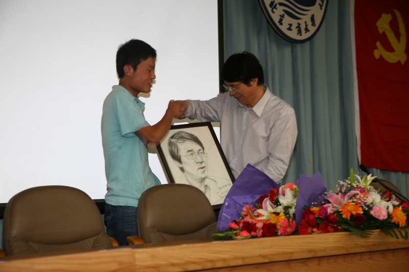報告結束后,在場的同學向何建明副主席提出了自己的問題,何建明副主席做出了詳細的解答。他希望我校同學在學習專業知識的同時注重文史知識的學習。最后,藝傳學院的同學向何建明副主席贈送了他繪制的何副主席的肖像畫。