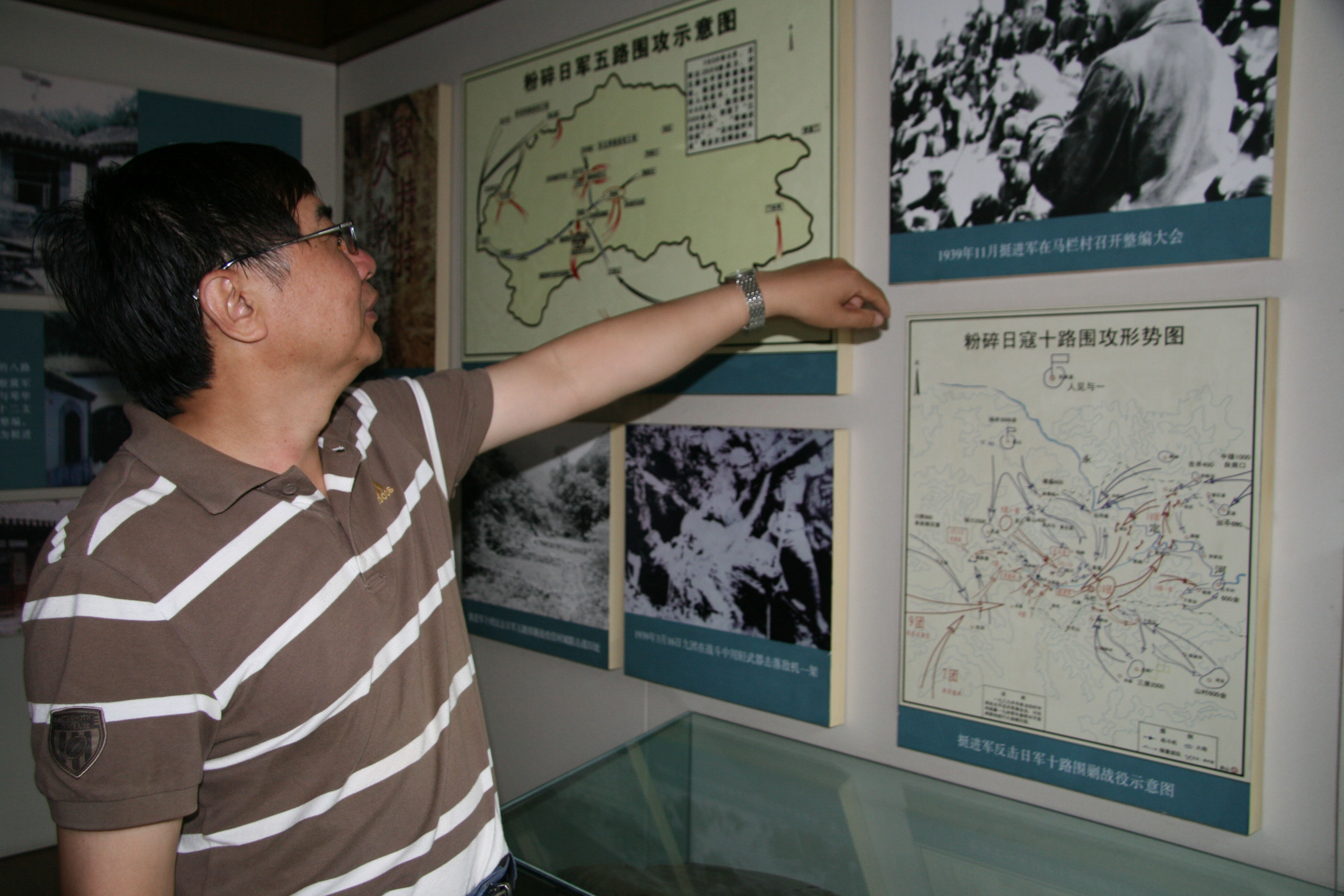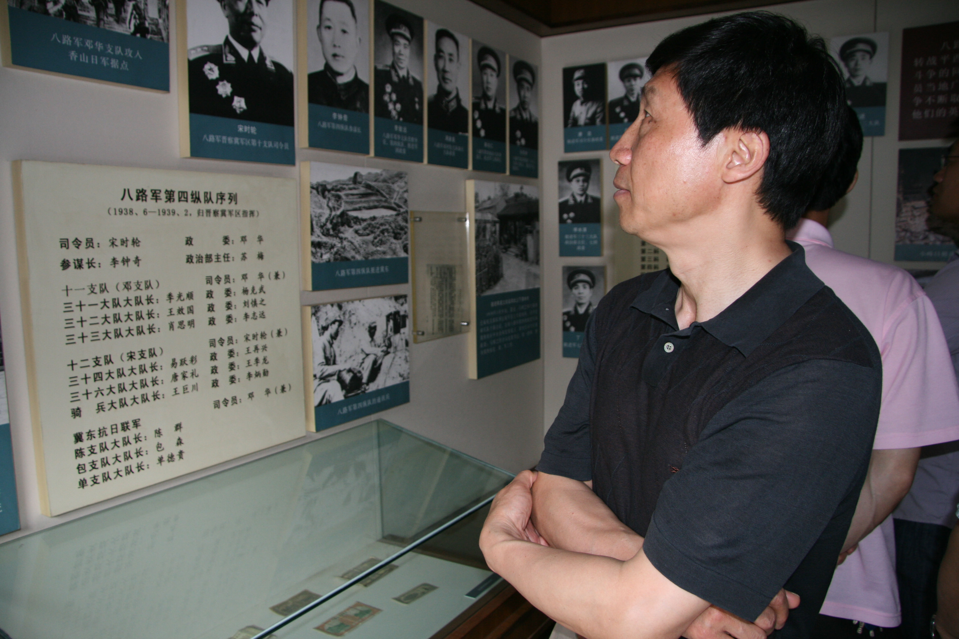 最后大家參觀了北京市青少年愛國主義教育基地冀熱察挺進軍司令部舊址陳列館。此館是北京市第一家由農(nóng)民集資建立的村級陳列館。該館占用挺進軍司令部舊址四合院一套,全部展線48.2平方米,資料照片135幅、文字介紹16幅、圖表3幅、油畫4幅、連環(huán)畫二組八幅、拓片二張、沙盤一個,實物108件。大家認真仔細地參觀了陳列館,積極學習討論,并參觀了防空洞、司令部政治處、通訊科等遺跡。