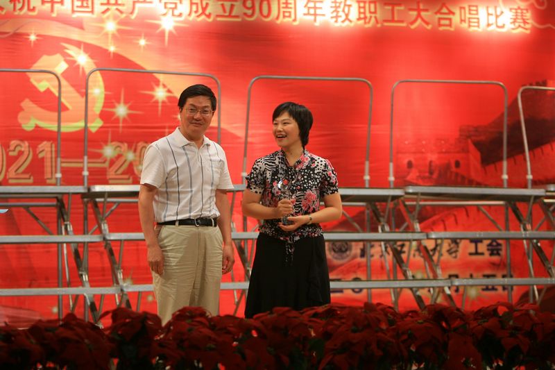 本次活動以“憶光輝歷程、展教工風采、促科學發展”為主題,經過三個多月的緊張籌備,來自全校16個分工會的900余名教職工參加了比賽。比賽由藝術與傳媒學院許莉老師、材料與機械工程學院錢立軍老師共同主持。按照安排,每個參賽隊伍要演唱兩首曲目,其中一首為指定曲目《沒有共產黨就沒有新中國》,另一首為自選歌曲。《沒有共產黨就沒有新中國》是1943年由年僅19歲的群眾劇社成員曹火星創作的一首歌曲。這首歌伴隨著中國共產黨領導中國人民贏得了抗日戰爭、解放戰爭的勝利,伴隨著新中國逐步走向繁榮富強。值此慶祝建黨90周年之際,將這首歌曲作為每個參賽隊伍的指定曲目,以此向領導中國昂首前進的中國共產黨表達崇高的敬意。