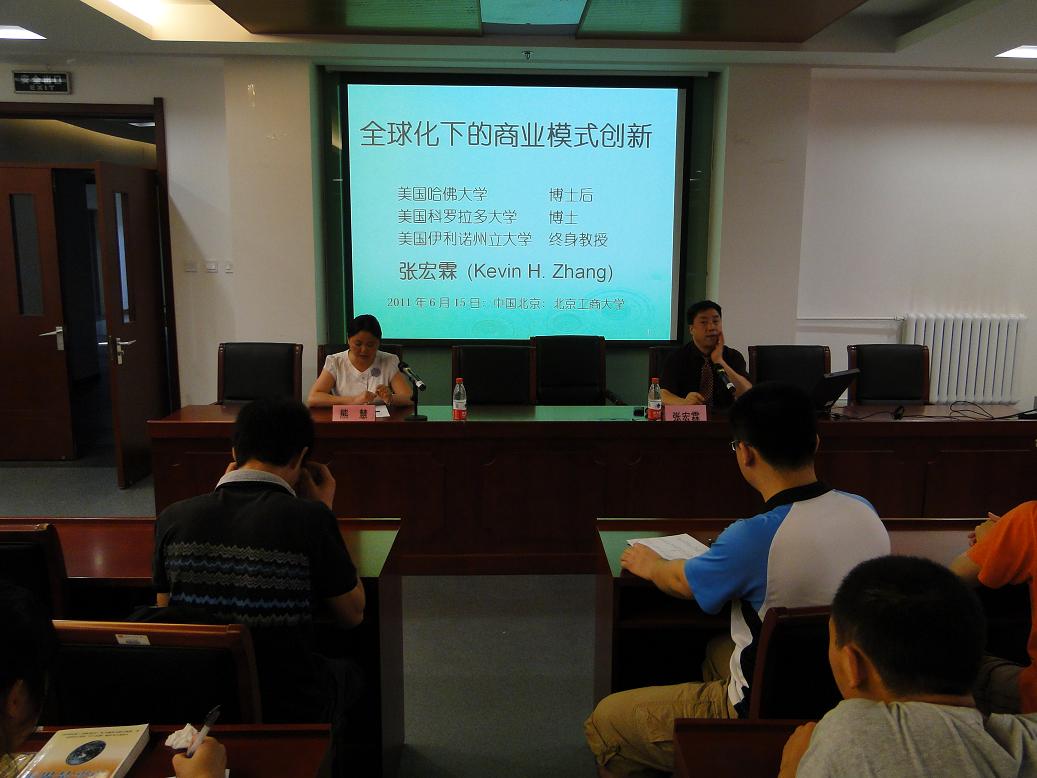 615晚,應研究生部之邀,美國伊利諾伊州立大學經濟學終身教授張宏霖來我校為研究生們作了題為“全球化下的商業模式與創新”的學術報告,報告在阜成路校區舉行。報告會由研究生部黨總支副書記兼研工部副部長熊慧主持。來自商學院、經濟學院的60余名研究生參加了此次報告會。