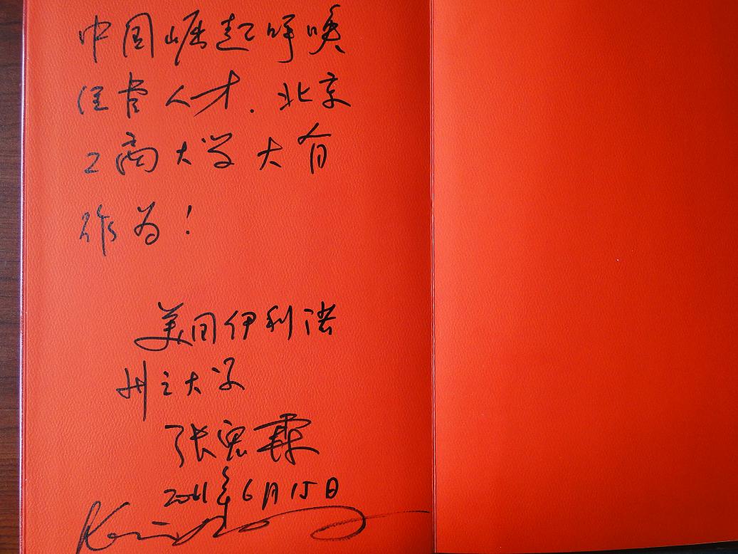 最后,張宏霖教授還為我校研究生題字“中國崛起呼喚經管人才,北京工商大學大有作為!”