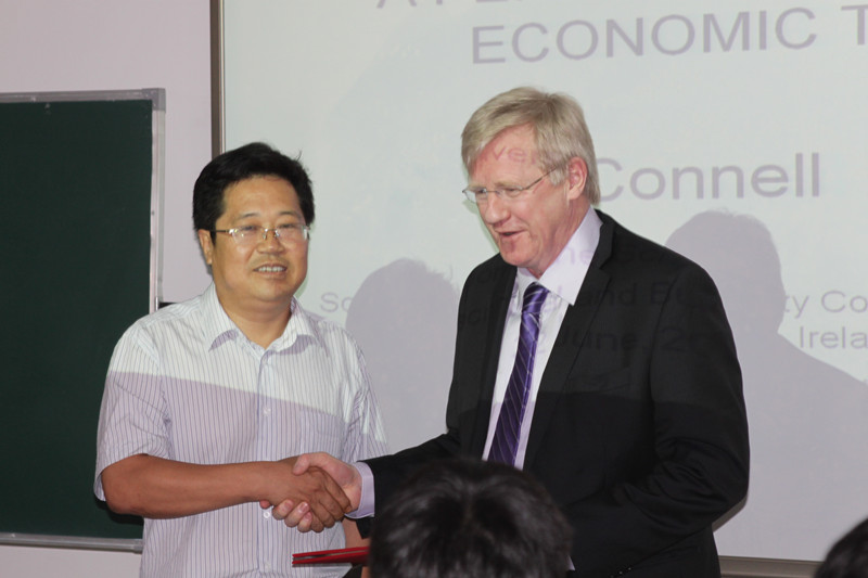 報告由楊德勇院長主持,經(jīng)濟學院黨總支書記李寶仁教授、副院長馬若微副教授、王云霞教授等老師參加了報告會。作為我校與UCC合作項目培養(yǎng)的優(yōu)秀畢業(yè)生,愛爾蘭政府企業(yè)局市場助理兼愛爾蘭大使館商務處商務助理梁超女士也應邀出席。理論經(jīng)濟學和應用經(jīng)濟學等學科的研究生和其他院系的一些研究生也聆聽了報告。報告由研究生部與經(jīng)濟學院共同主辦。