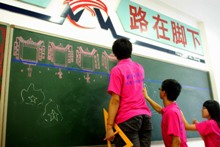 今天是正式開始教學的日子,各個課程逐個開展,其中最吸引人眼球的莫過于新鮮刺激、妙趣橫生的辯論課。經濟學院辯論隊是一只優秀的隊伍,在許多首都高校辯論賽中都取得過突出成績,成員們引領著四個班級71名同學進入了一個新奇的思辨世界。歷史課上老師們的生動講解深得孩子們喜愛;英語課上老師用流利的口語向孩子們展示了大學生的知識素養,教會孩子們許多發音技巧和學習方法;美術課上同學們集思廣益,用成員們準備的繪畫工具設計有關建黨90周年的字體畫,孩子們聰慧可愛,構思新穎,作品各有特色,表達了對黨的熱愛和祝福。