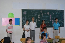 7月14日下午,材機學院黨總支書記呂東燕、副書記馬春暉、副院長楊彪專程來到良鄉五中,慰問我院暑期社會實踐團成員和五中的學生們。呂書記一行不僅為同學們帶來了食物和礦泉水等慰問品,還為良五的學生們送來了筆記本等學習用品。他們視察了實踐團支教同學們的教學情況,隨后又和良鄉五中的領導進行了深入交談,了解了學校的歷史和發展情況,雙方領導表示將繼續加強合作,讓五中培養出更多優秀的人才來回報社會。