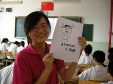 今天,我們采訪的是我團第二分隊教學組組長,同時也是4班班主任羅杜娟。美工課上,孩子們畫了很多關于羅老師的圖畫,諸如“我是四班班主任羅杜娟!”、“祝羅老師越來越美麗!”。在我們看來稚嫩的線條和有些歪歪扭扭的字跡,卻傳達出了大家對羅杜娟老師的喜愛,剎那間,羅杜娟老師成為了實踐團最受歡迎的班主任。