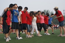 昨夜的雨絲毫沒(méi)有打消我們運(yùn)動(dòng)的積極性,同學(xué)們?cè)缭绲貋?lái)到了操場(chǎng),躍躍欲試。我們?cè)谶\(yùn)動(dòng)會(huì)中進(jìn)行了四個(gè)有趣的集體項(xiàng)目。每個(gè)活動(dòng)都凝聚了團(tuán)隊(duì)的集體智慧。“十人十一足”讓大家的默契度達(dá)到了最高點(diǎn)。“乒乓球接力”讓大家明白速度不是最重要的,有時(shí)候短暫的停留會(huì)讓事情發(fā)展得更加平穩(wěn)順利。“無(wú)敵的風(fēng)火輪”讓大家匯集彼此的智慧制造出了一個(gè)又一個(gè)形態(tài)各異的風(fēng)火輪,踩著風(fēng)火輪每個(gè)隊(duì)伍到達(dá)了終點(diǎn)。“雷區(qū)取水”讓大家打破了各個(gè)分組的概念,一個(gè)組出創(chuàng)意,其他組的人來(lái)幫忙,每個(gè)人都很賣(mài)力,這讓學(xué)生們感受到了互幫互助的重要性。