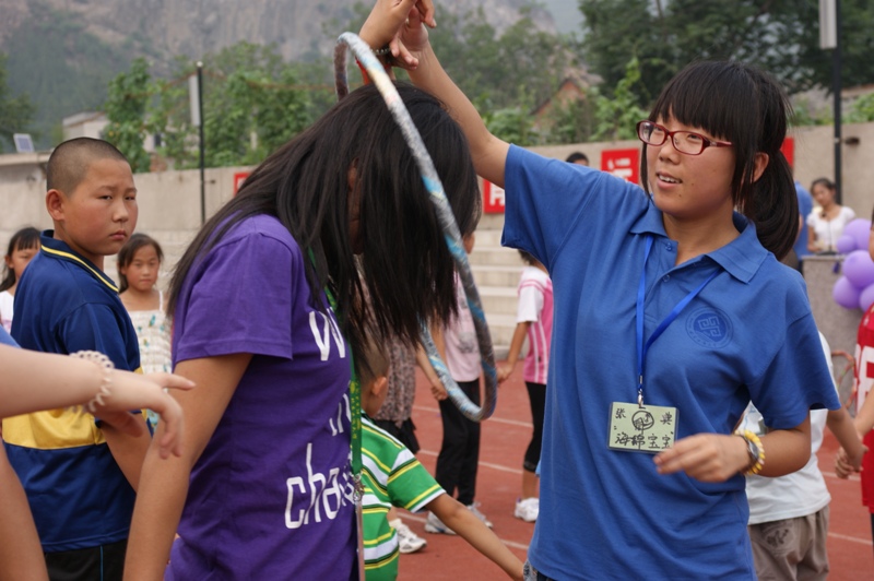 在趣味運(yùn)動(dòng)會(huì)中,各年級(jí)分別組成一個(gè)隊(duì)。活動(dòng)本著 “全員性參與”的目的,培養(yǎng)孩子們團(tuán)結(jié)協(xié)作的能力。比賽包括“三人四足”、“夾球奔跑”、“傳呼啦圈”等項(xiàng)目。期間,孩子們不免跌跌拌拌,卻依然堅(jiān)持奔向終點(diǎn),現(xiàn)場(chǎng)笑聲、掌聲、吶喊聲不斷。活動(dòng)還設(shè)有“親子賽”,使當(dāng)?shù)匕傩找灿袡C(jī)會(huì)參加,現(xiàn)場(chǎng)氣氛變得更加融洽、熱鬧。