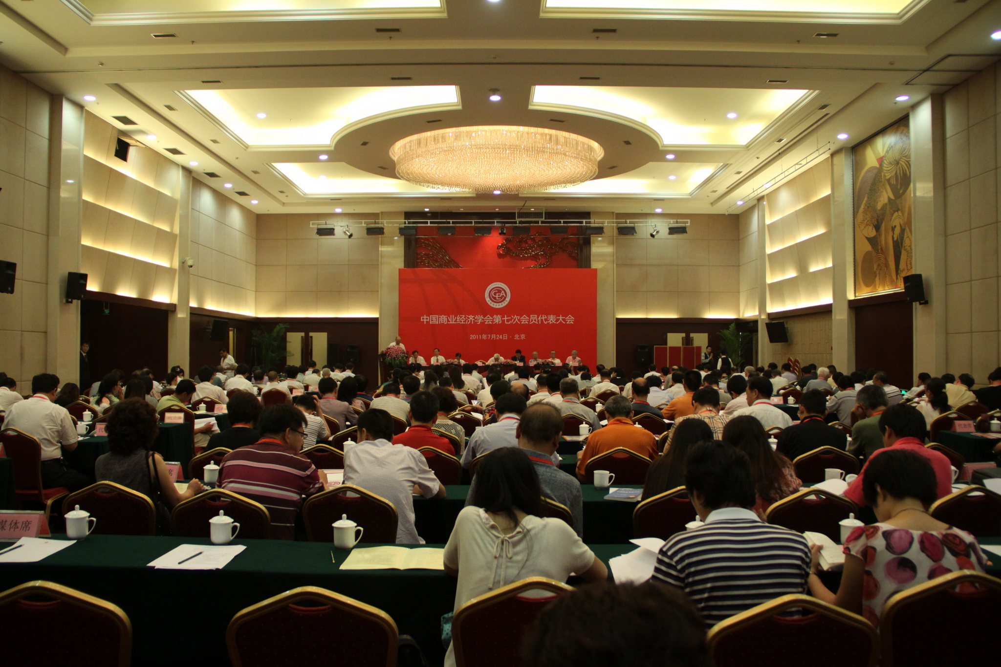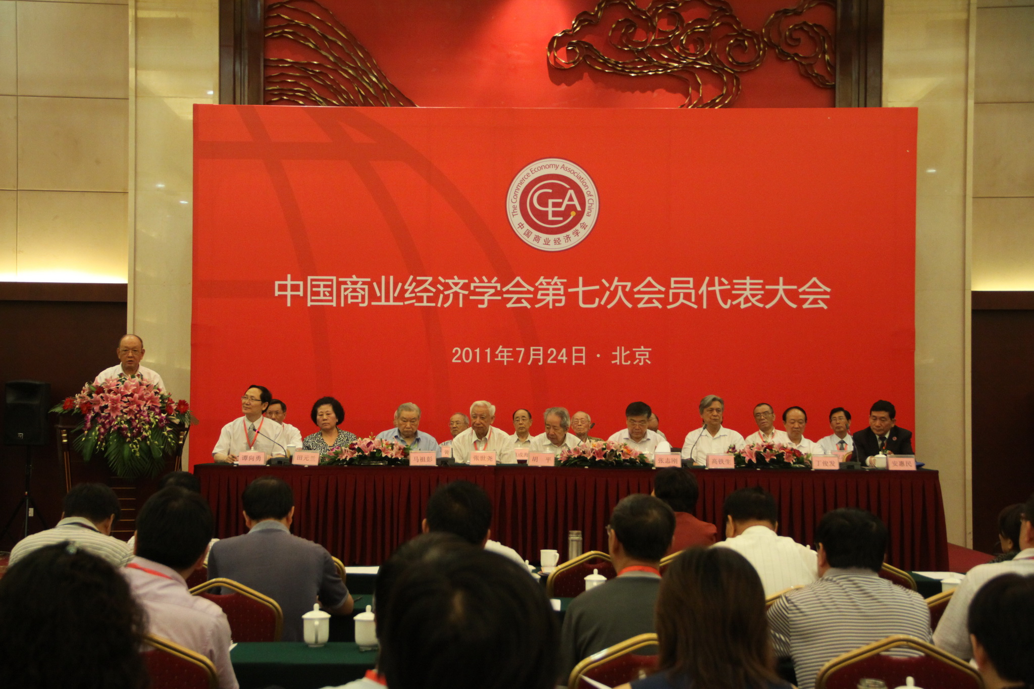 中國商業(yè)經(jīng)濟(jì)學(xué)會第七次會員代表大會于2011年7月24日在北京隆重召開。這次會議是在中國實施“十二五”規(guī)劃的開局之年召開的,是全國商業(yè)經(jīng)濟(jì)理論界的一次盛會。大會第一階段由中國商業(yè)經(jīng)濟(jì)學(xué)第六屆理事會會長、原商業(yè)部副部長張世堯主持。原商業(yè)部部長胡平、原中央財經(jīng)領(lǐng)導(dǎo)小組辦公室副秘書長馬祖彭、商務(wù)部原副部長、中國商業(yè)聯(lián)合會會長張志剛、國家糧食儲備局原局長、中國市場學(xué)會理事長高鐵生等出席了會議。我校譚向勇校長、謝志華副校長及經(jīng)濟(jì)學(xué)院、商學(xué)院相關(guān)教師參加了本次會議。