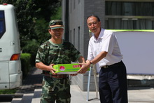 9月2日,黨委副書記盧思鋒,黨委副書記、紀(jì)委書記、工會(huì)主席張德玉代表學(xué)校黨委和行政來(lái)到良鄉(xiāng)校區(qū),親切慰問了在新生軍訓(xùn)中不辭辛苦的軍訓(xùn)團(tuán)老師和官兵們,為他們送去品月餅、水果和節(jié)日的祝福。