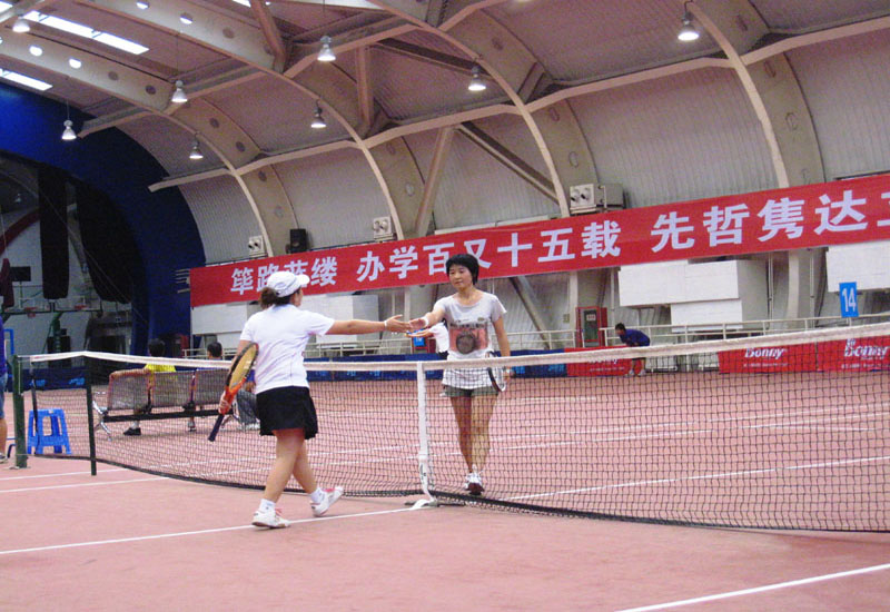 我校網球代表隊一行9人于718日至28日參加了在陜西省西安市西安建筑科技大學舉行的第十六屆全國大學生網球錦標賽。本屆網球大賽共有136所高校參賽,運動員610人。北京的許多院校如北大、清華、人大、北京化工大學等也參加了此次大賽。在比賽中運動員頑強拼搏,賽出風格、賽出水平,其中女子隊員計信學院電子信息093何中清打入女子單打前16名,并榮獲體育道德風尚獎;女子隊員藝傳學院產設09劉爽和商學院會計092劉怡雯進入女子雙打前16名,男子隊員經濟學院經貿102牛稼祥單打進入32強。我校網球隊是第一次在全國賽中嶄露頭角,開場就進入了中上位置,希望今后取得更好的成績。