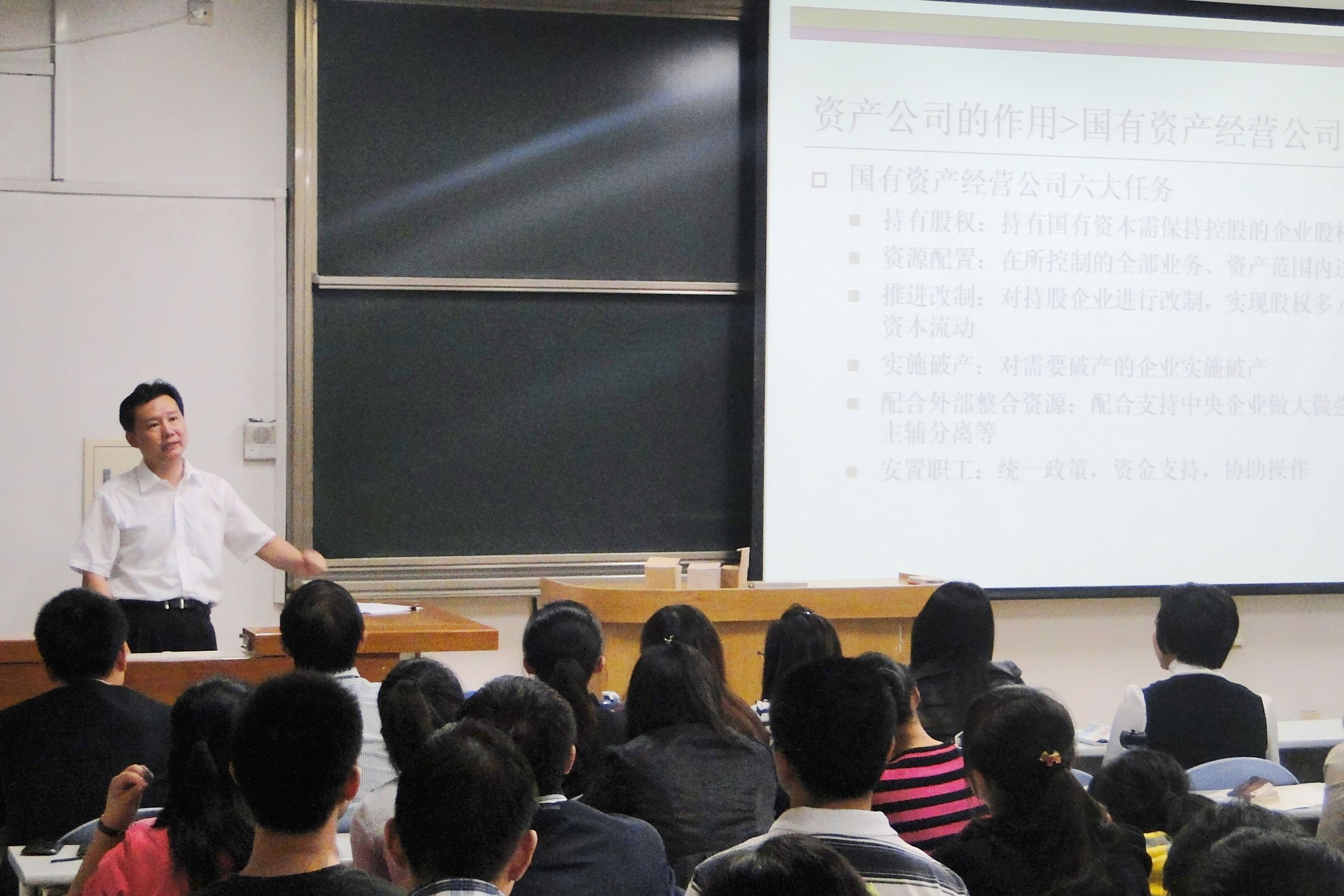 講座結束后,馬正武先生與現場同學做了互動交流,同學們踴躍提問,提出了如何看待“國進民退”、一些關系到國計民生的行業央企和民企的地位關系、如何保證境外的國有資產增值等問題。馬正武先生一一做了詳細解答,并表示歡迎同學們今后加入誠通集團。