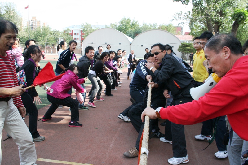 在各分工會(huì)的認(rèn)真組織下,廣大教職工踴躍參加,現(xiàn)場(chǎng)笑聲歡呼聲不斷。隨著比賽的進(jìn)行,賽場(chǎng)上的氣氛愈加濃烈。沙包攻壘、集體跳繩等項(xiàng)目,大家玩的不亦樂乎,重新體會(huì)到了小時(shí)候那種簡(jiǎn)單的快樂;齊心顛球、混合接力和巧接足球等項(xiàng)目,讓大家在尋找默契的同時(shí)感受到了團(tuán)結(jié)協(xié)助的力量;最激動(dòng)人心的場(chǎng)面還是拔河比賽現(xiàn)場(chǎng),哨音響起,雙方隊(duì)員都卯足了勁向自己方向拽繩,耳邊伴隨著拉拉隊(duì)員的口號(hào)“一、二,一、二,加、油,加、油……”,繩子上紅標(biāo)的每一次移動(dòng)都扣人心弦,讓大家深刻體會(huì)到了“堅(jiān)持就是勝利”的真諦,如圖書館分工會(huì)與材料與機(jī)械工程學(xué)院分工會(huì)一場(chǎng)比賽就持續(xù)了近3分鐘。