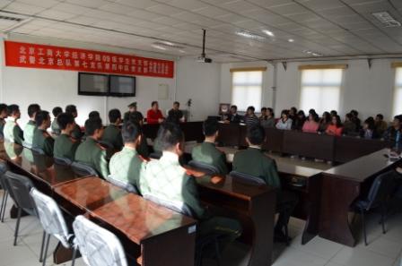 10月16日,經濟學院2009級學生黨支部48名黨員,在輔導員向小平老師的帶領下,前往武警北京總隊七支隊第四中隊駐地,開展“紅色1+1”共建活動。