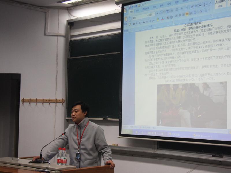 11月4日晚,校友會秘書處、學校就業指導中心聯合材料與機械工程學院共同舉辦了題為“就業、創業、職場生存”的講座。此次講座是校友講壇繼施炳豐、江國金、賈葆蘅等校友講座后的第四期,同時也是就業宣傳月首場講座。講座主講人為北京雷石世紀科技有限公司董事長、91級校友馬杰。材料與機械工程學院黨總支書記呂東燕、副書記馬春暉,校友會秘書處副秘書長王嘉彥、學校就業指導中心李丹丹等參加活動。