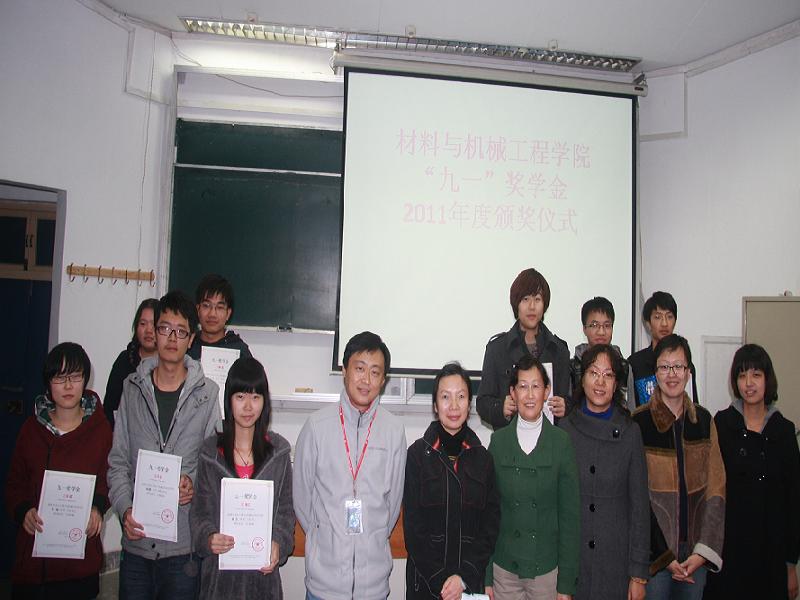 在講座開始前,材料與機械工程學院馬春暉副書記主持了2011年度“91獎學金”頒獎儀式。91獎學金是由材料與機械工程學院91級全體校友出資在學校教育基金會捐贈設立的,91獎學金主要用來表彰和激勵品學兼優的學生,馬杰校友是捐贈人之一。呂東燕、馬杰分別為此次獲獎同學頒發了榮譽證書和獎金。材料與機械工程學院15人獲得獎學金。