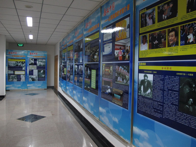 為進一步加強黨員干部反腐倡廉教育,認真學習和貫徹執行《黨員領導干部廉潔從政若干準則》,進一步加強廉政風險防控管理,學校黨委宣傳部、紀委制作了“廉政中國----反腐倡廉教育圖片展”,現在阜成路綜合樓三層展出。