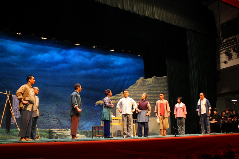 最后,大會進行了北京國粹藝術傳承促進會、北京青春國粹聯盟北京工商大學分會成立暨揭牌儀式。北京工商大學分會是北京國粹藝術傳承促進會建立的第一個高校分會。為紀念一二·九運動76周年,北京京劇院為我校師生演出了現代京劇《沙家浜》全劇。全體演員以精彩絕倫的唱腔和表演博得了在場觀眾的陣陣喝彩。
