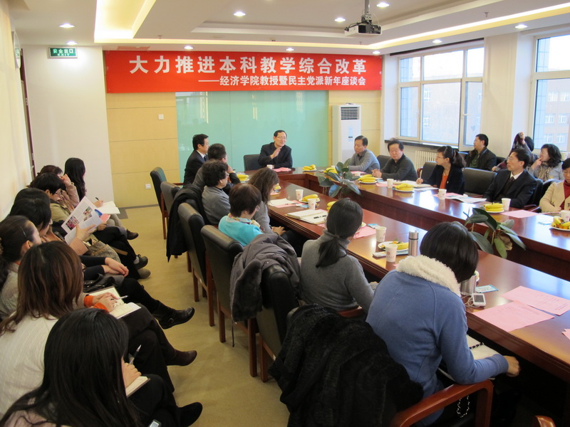 12月7日,經(jīng)濟(jì)學(xué)院在阜成路校區(qū)舉辦“大力推進(jìn)本科教學(xué)綜合改革——經(jīng)濟(jì)學(xué)院教授、民主黨派人士新年座談會(huì)”,譚向勇校長(zhǎng)出席本次座談會(huì)并發(fā)表講話。座談會(huì)由黨總支書(shū)記李寶仁教授主持,經(jīng)濟(jì)學(xué)院院領(lǐng)導(dǎo)、教授、民主黨派、系主任、教研室主任及行政、黨務(wù)辦公室主任參加了會(huì)議。