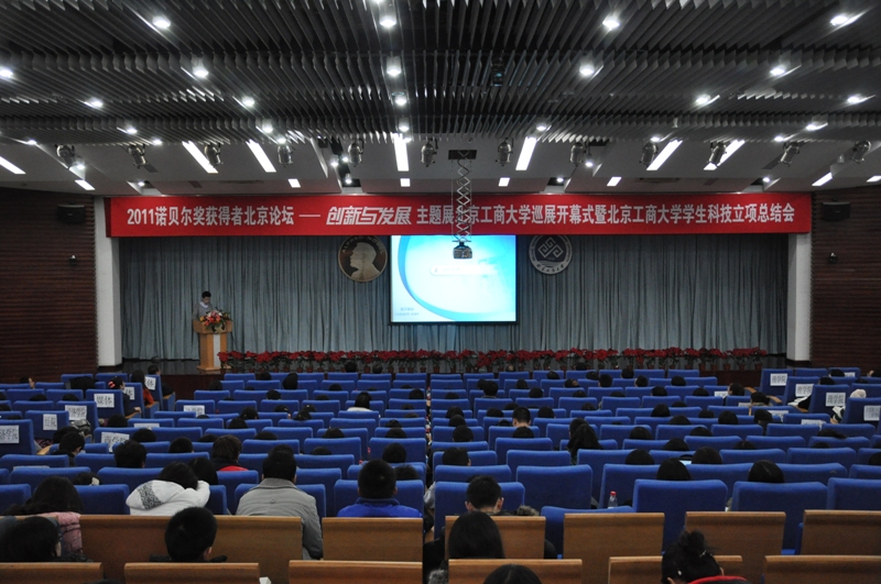 北京工商大學學生科技立項總結會于12月21日在良鄉校區舉辦。我校黨委副書記盧思鋒,副校長謝志華出席大會。科技處副處長王小藝,教務處副處長祝鈞,團委書記呂良、副書記郭新愿,以及各學院團總支書記也參加了此次大會。