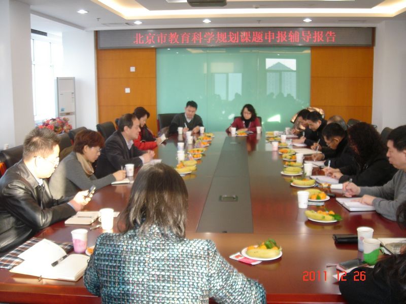 報告會由學生處處長呂素香主持,科學技術處處長王國順致歡迎詞。輔導報告會后耿主任與參會老師親切座談,對大家提出的問題做了認真解答,鼓勵大家針對北京市教育規劃課題中綜合政策研究、高等教育研究、德育、文化體育及美育、教學改革等重點研究領域開展本土化研究和調查、實驗等實證研究,并早作準備,積極參加2012年度的課題申報。