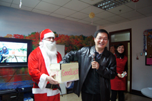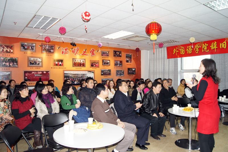 12月23日下午,圣誕前夕,外國語學院分工會在良鄉校區裝飾一新的工會之家舉辦了一場生動活潑、熱鬧非凡的辭舊迎新聯歡會。參加晚會的教職工達60余人,是外國語學院有史以來人數最多的一次。聯歡會由劉明宇、鄭昊霞兩位老師主持,學校黨委副書記兼工會主席張德玉、副校長李朝鮮也應邀參加了聯歡會。